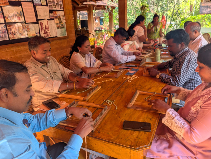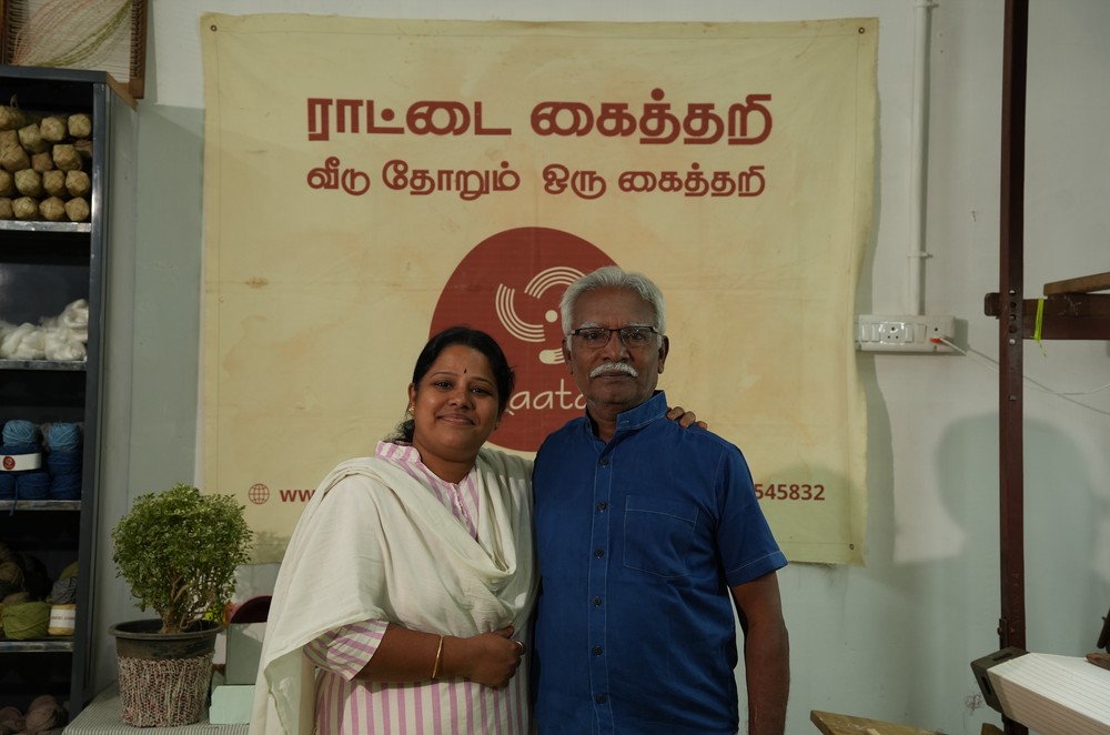 Determined to make a difference and preserve this heritage, she established Raatai. Working directly alongside traditional weavers, Kalaiyarasi reimagined the complex handloom into accessible, portable DIY kits.